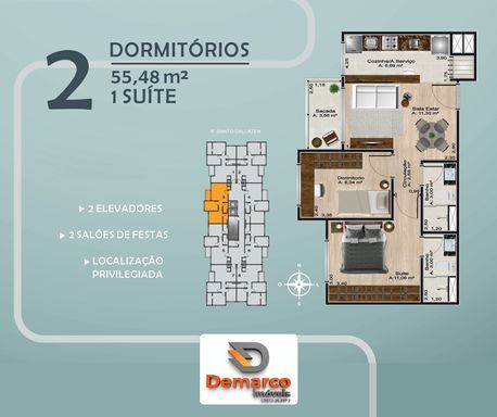 Prédio com elevador e salão de festas
