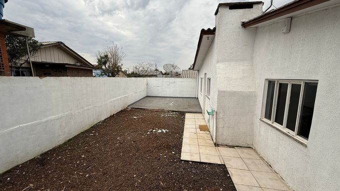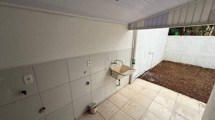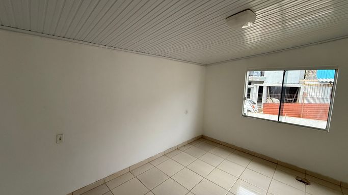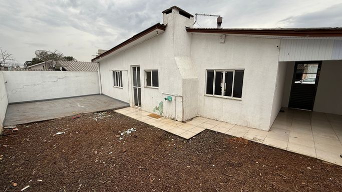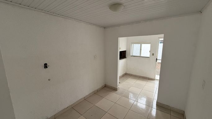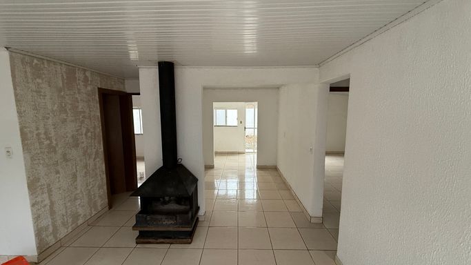 Casa 3 dormitórios, sala com lareira, cozinha e banheiro social, garagem.